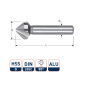 HSS Verzinkfrezen 90°, 3 snijk., DIN 335 C, ALU