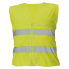 HI-VIS, universeel, reflecterend vest; makkelijk opvouwbaar in zijn eigen borstzak; 2 reflecterende strepen rond de borst en middel; klittenbandsluiting.